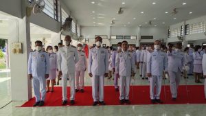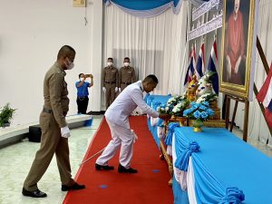 พร้อมด้วย ข้าราชการตำรวจ สภ.นาขยาด ชุดที่ ๓ ร่วมพิธีทำบุญตักบาตรและพิธีวางพานพุ่มดอกไม้ถวายราชสักการะ เนื่องในวันประสูติครบรอบ ๑๐๐ ปี สมเด็จพระเจ้าพี่นางเธอ เจ้าฟ้ากัลยาณิวัฒนา กรมหลวงนราธิวาสราชนครินทร์ โดยมี นายภูดิศ ชนะวรรณโณ นายอำเภอควนขนุน เป็นประธานในพิธี ณ ศาลาประชาคมอำเภอควนขนุน จ.พัทลุง