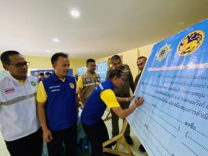 วันที่ 10 มิถุนายน 2567 แต่เวลา 09:00 น. พ.ต.อ.สมศักดิ์ กองทิพย์ ผกก.สภ.นาขยาด พ.ต.ท.สมศักดิ์ ฤทธิศักดิ์ รอง ผกก.ป.สภ.นาขยาด หน.ชุด ชมส.,พ.ต.ท.วิรัตน์ พรหมทอง สวป.สภ.นาขยาด รอง หน.ชุด ชมส.พร้อมด้วยข้าราชการตำรวจชุดปฏิบัติการโครงการยั่งยืนฯ และข้าราชการตำรวจในสังกัด สภ.นาขยาด ร่วมจัดกิจกรรมพิธีเปิดโครงการดำเนินงานชุมชนอย่างยั่งยืนฯในพื้นที่แพร่ระบาดยาเสพติด ตามนโยบายเร่งด่วนของรัฐบาล ณ บ้านทุ่งขึงหนัง ม.6 ต.พนมวังก์อ.ควนขนุน จว.พัทลุง โดยมี นายภูดิศ ชนะวรรณโณ นายอำเภอควนขนุน เป็นประธาน พร้อมด้วยหัวหน้าส่วนราชการ /ผู้แทนหน่วยงาน ฝ่ายปกครอง สาธารณสุข โรงเรียน ผู้นำชุมชน ผู้นำท้องถิ่น และ สภ.นาขยาด ร่วมลงนามในบันทึกข้อตกลงร่วมมือ (MOU) การป้องกันและแก้ไขปัญหายาเสพติดในหมู่บ้าน/ชุมชน ซึ่งการจัดกิจกรรมได้รับความร่วมมือจากประชาชนในหมู่บ้านเป้าหมายเข้าร่วมพิธีโดยพร้อมเพรียงกัน