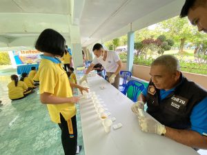 วันที่ 14 พ.ย.2566 ระหว่างเวลา 10.30 – 12.00 น. ภายใต้การอำนวยการของ พ.ต.อ.สมศักดิ์ กองทิพย์ ผกก.สภ.นาขยาด พ.ต.ท.พิทักษ์พล สมพงศ์ รอง ผกก.ป.สภ.นาขยาด,พ.ต.ท.วิรัตน์ จีนเมือง รอง ผกก.สส.สภ.นาขยาด สั่งการให้ พ.ต.ท.อดิศักดิ์ รอดพูล สว.สส.สภ.นาขยาด พร้อมกำลังชุดสืบสวน, ครูตำรวจ D.A.R.E. ร่วมบรรยาย“ให้ความรู้เรื่องโทษของยาเสพติด”และร่วมตรวจปัสสาวะนักเรียน ณ โรงเรียนนาขยาดวิทยาคาร