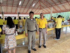 วันที่ 28 ก.ค.67 เวลา 07.00 น. พ.ต.อ.สมศักดิ์ กองทิพย์ ผกก.สภ.นาขยาด มอบหมายข้าราชการตำรวจชุดกิจกรรมที่ 3 เข้าร่วมกิจกรรมทำบุญตักบาตรถวายเป็นพระราชกุศล เนื่องในโอกาสพระราชพิธีมหามงคลเฉลิมพระชนมพรรษา 6 รอบ 28 กรกฎาคม 2567 ณ สำนักงานเทศบาลตำบลควนขนุน จว.พัทลุง