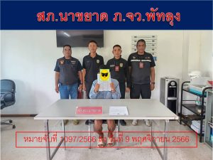 # โดยต้องหาว่ากระทำความผิดฐาน “ประมวลกฎหมายยาเสพติด (เมทแอมเฟตามีน) เสพ,พรบ.จราจรทางบก,พรบ.รถยนต์(ผิดเงื่อไขคุมประพฤติ)” (กรณีหมายจับเจ้าพนักงานผู้จับกุมได้แสดงหมายจับของศาลจังหวัดพัทลุง ที่ 1097/2566 ลง วันที่ 9 พฤศจิกายน 2566 ต่อหน้าผู้ถูกจับแล้ว) นำส่ง พงส.นาขยาด เพื่อดำเนินการตามกฎหมายต่อไป