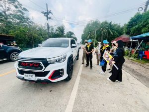 พ.ต.ท.หญิง ณัฐรดา ทองบุญนุ้ย สว.อก.สภ.นาขยาด พร้อมด้วยตำรวจจิตอาสา สภ.นาขยาด ประชาสัมพันธ์รณรงค์ การป้องกันและลดอุบัติเหตุทางถนนในช่วงเทศกาลปีใหม่ พ.ศ.2569 โดยยึดตามแนวทาง “ขับขี่ปลอดภัย ลดความเร็ว ลดอุบัติเหตุ” เมาไม่ขับปฏิบัติตามกฎจราจร ณ ด่านกู้ชีพ ทต.นาขยาด ต.นาขยาด อ.ควนขนุน จว.พัทลุง
