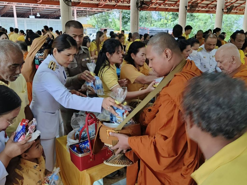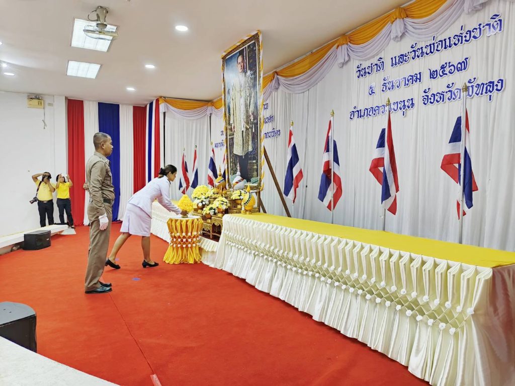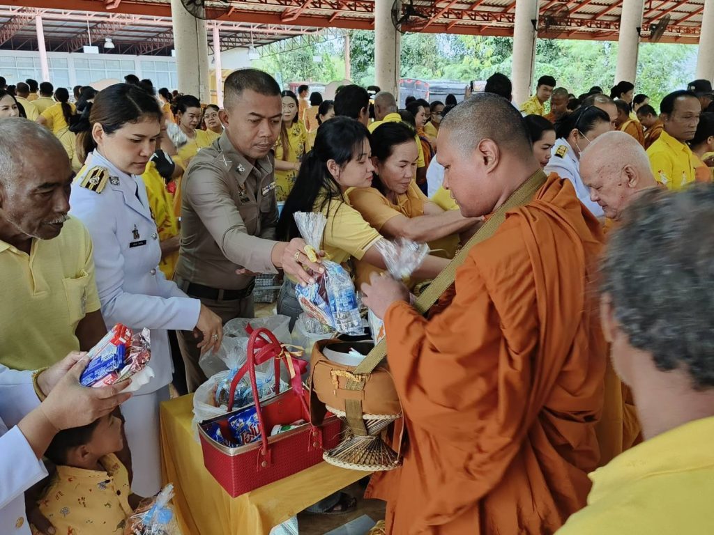 วันที่ 5 ธ.ค.67 เวลา 07.30 น.พ.ต.อ.สมศักดิ์ กองทิพย์ ผกก.สภ.นาขยาด มอบหมายให้ พ.ต.ต.หญิงสุชินญา อินเจริญสว.(สอบสวน)สภ.นาขยาด พร้อมด้วยข้าราชการตำรวจชุดกิจกรรมที่ 4 ร่วมพิธีเจริญพระพุทธมนต์และทำบุญตักบาตรถวายพระราชกุศล ณ สนง.เทศบาลควนขนุนและพิธีวางพานพุ่มดอกไม้ถวายราชสักการะ ณ ศาลาประชาคม อ.ควนขนุน จ.พัทลุงเนื่องในวันคล้ายวันพระบรมราชสมภพ พระบาทสมเด็จพระบรมชนกาธิเบศร มหาภูมิพลอดุลยเดชมหาราช บรมนาถบพิตร วันชาติ และวันพ่อแห่งชาติ 5 ธันวาคม 2567 12 ธันวาคม 2024 โดย admin / ข่าวภารกิจผู้บังคับบัญชา,ผลการปฏิบัติงานของสายงานอำนวยการ