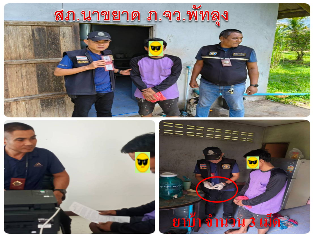 1. ยาเสพติดให้โทษประเภท 1 (ยาบ้า) ชนิดเม็ด กลมแบน สีส้ม ตรงกลางประทับตัวอักษร WY ห่อหุ้มด้วยถุงพลาสติกใสขนาดเส้นผ่าศูนย์กลางประมาณ 8 ซม. จำนวน 3 เม็ด วางอยู่บนโต๊ะกับข้าวภายในห้องครัวภายในบ้านของผู้ถูกจับ