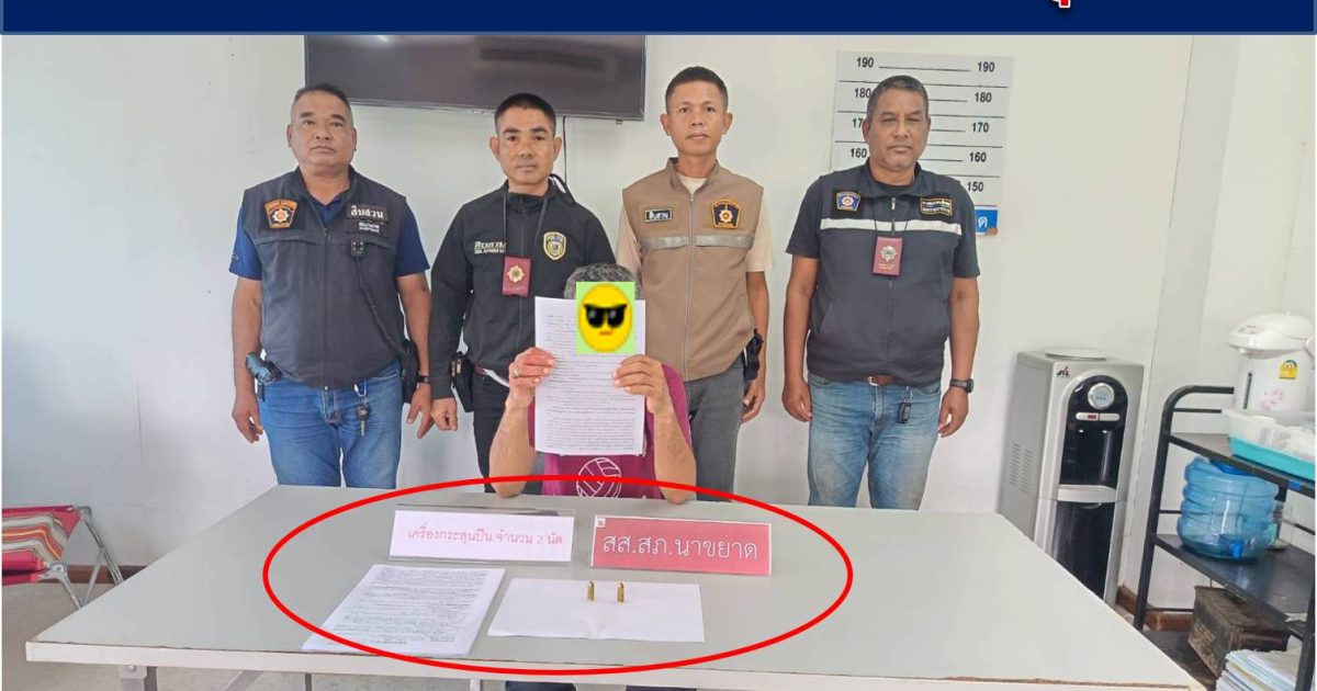 # โดยกล่าวหาว่า “มีเครื่องกระสุนปืน(ขนาด 9 มม.) ไว้ในครองครอบโดยไม่ได้รับอนุญาต”