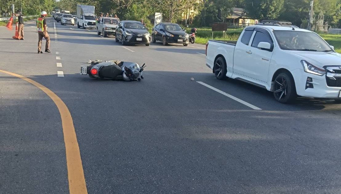 ระหว่างรถจักรยานยนต์กับรถยนต์เอนกประสงค์ 7 ที่นั่ง เหตุเกิด ถนนสายเอเซีย(จุดกลับรถลูกเก้า ม.3 ต.พนมวังก์ อ.ควนขนุน จ.พัทลุง