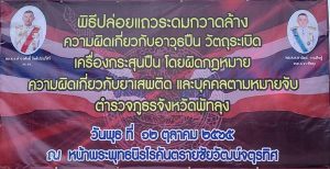 วันนี้ 12 ต.ค.65 เวลา 18.00 น. พ.ต.อ.ธนัญชัย ศิริวรรณา ผกก.สภ.นาขยาด เข้าร่วมพิธีปล่อยแถวระดมกวาดล้างความผิดเกี่ยวกับอาวุธปืน ยาสเสพติด และบุคคลตามหมายจับ ตามบัญชา พล.อ.ประยุทธ์ จันทร์โอชา นายกรัฐมนตรี และนโยบายของ พล.ต.อ.ดำรงศักดิ์ กิตติประภัสร์ ผบ.ตร. โดยมี พล.ต.ต.ตานินต์ รามดิษฐ์ ผบก.ภ.จว.พัทลุง เป็นประธาน และมี หน.สภ.ในสังกัด ภ.จว.พัทลุง, พฐ.จว.พัทลุง, ตชด.434 พัทลุง, สันติบาล, กก.7 บก.ทล., ตม.พท., กก.3 บก.ทท., บรูณาการสรรพกำลังหน่วยที่เกี่ยวข้องได้แก่ ป้องกันจังหวัดพัทลุง, กอ.รมน.จังหวัดพัทลุง,นายอำเภอเมืองพัทลุง, ช.พัน401,402 กำลังกองร้อย อส. และสื่อมวลชน บริเวณหน้าพระพุทธนิรโรคียจนสบฃัยวัฒน์จตุรทิศ ยอดกำลังพล รวม 370 คน