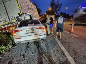 วันนี้ 8 พ.ย. 2568 แต่เวลา 05.20 น. ร.ต.ท.ชาญศักดิ์ ท้ายเซ่ง รอง สว.(ป.) สภ.นาขยาด ร้อยเวร 20 ชป.รถยนต์ ร่วมกับร้อยเวร 30 ร่วม ว.4 เหตุ ว.40 รถยนต์เก๋งชนท้ายรถบรรทุก 6 ล้อ มีผู้ได้รับบาดเจ็บ 1 ราย กู้ชีพนำส่ง รพ.ควนขนุน ทรัพย์สินทางราชการไม่ได้รับความเสียหาย เหตุเกิด ถนนสาย41 ฝั่งขาขึ้น(บริเวณจุดกลับรถไสหยี) พื้นที่ ม.7 ต.แพรกหา อ.ควนขนุน จ.พัทลุง