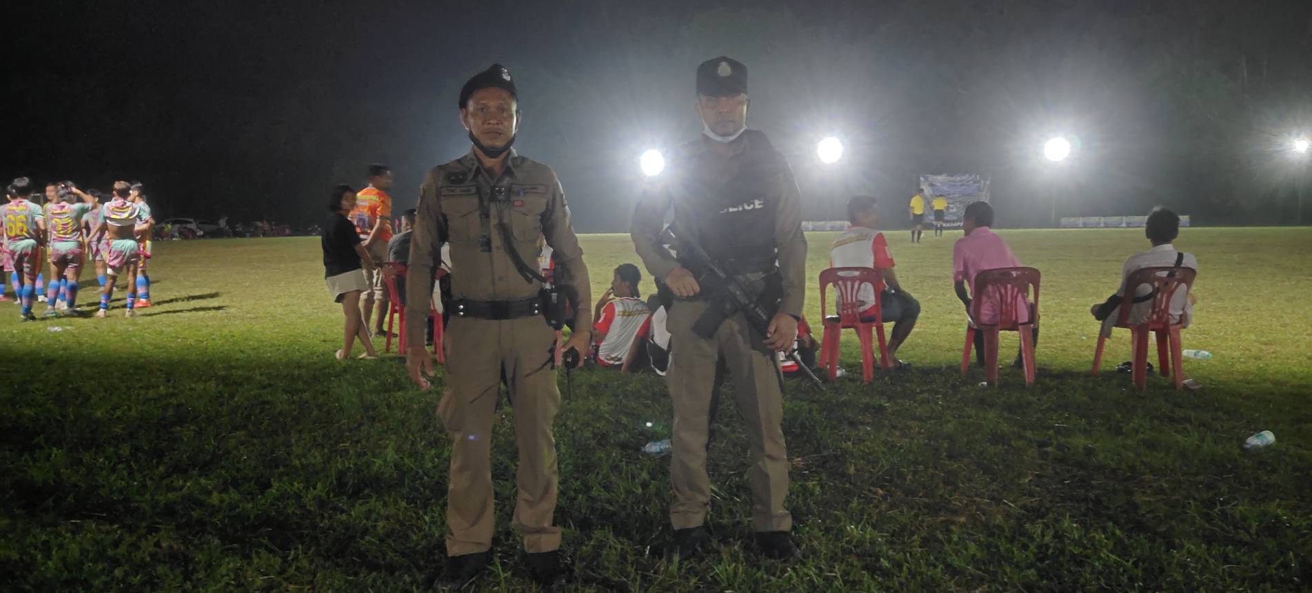 ร้อยเวร 20 พร้อมกำลังสายตรวจรถยนต์ ว.4 รักษาความปลอดภัยการแข่งขันกีฬาฟุตบอล”โครงการแม่