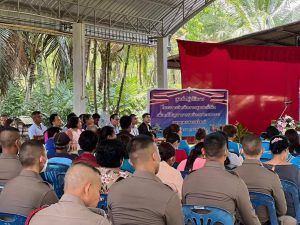 เมื่อวันที่ 4 เม.ย.2566 เวลา 13.00 น. ภายใต้การอำนวยการของ ว่าที่ พ.ต.อ.สมศักดิ์ กองทิพย์ ผกก.สภ.นาขยาด พ.ต.ท.พิทักษ์พล สมพงศ์ รอง ผกก.ป.ฯ, พ.ต.ท.อิดิศักดิ์ รอดพูล สว.สส.ฯ พ.ต.ท.หญิง ณัฐรดา ทองบุญนุ้ย สว.อก.ฯ พ.ต.ต.วิรัตน์ พรหมทอง สวป.ฯ และตำรวจิตอาสา, ชุดปฏิบัติการชุมชนยั่งยื่น สภ.นาขยาด ร่วมกับฝ่ายปกคอรง หน่วยงานและประชาชนในพื้นที่ชุมชนบ้านใสควายฟัน ม.11 ต.นาขยาด อ.ควนขนุน จว.พัทลุง จัดกิจกรรมร่วมรณรงค์ประชาสัมพันธ์ให้ประชาชนเข้าใจถึงแนวทางการแก้ไขปัญหายาเสพติดแบบครบวงจร ตามยุทธศาสตร์ชาติ โดยมีนายภูดิศ ชนะวรรณโณ นายอำเภอควนขนุน เป็นประธานในพิธี และได้ร่วมรณรงค์ประชาสัมพันธ์ให้ประชาชนเข้าใจถึงแนวทางแก้ไขปัญหายาเสพติดเพื่อสร้างชุมชนยั่งยืนต่อไป และได้ร่วมตรวจปัสสาวะเพื่อหาสารเสพติดให้แก่ประชาชนที่เข้าร่วมโครงการฯ